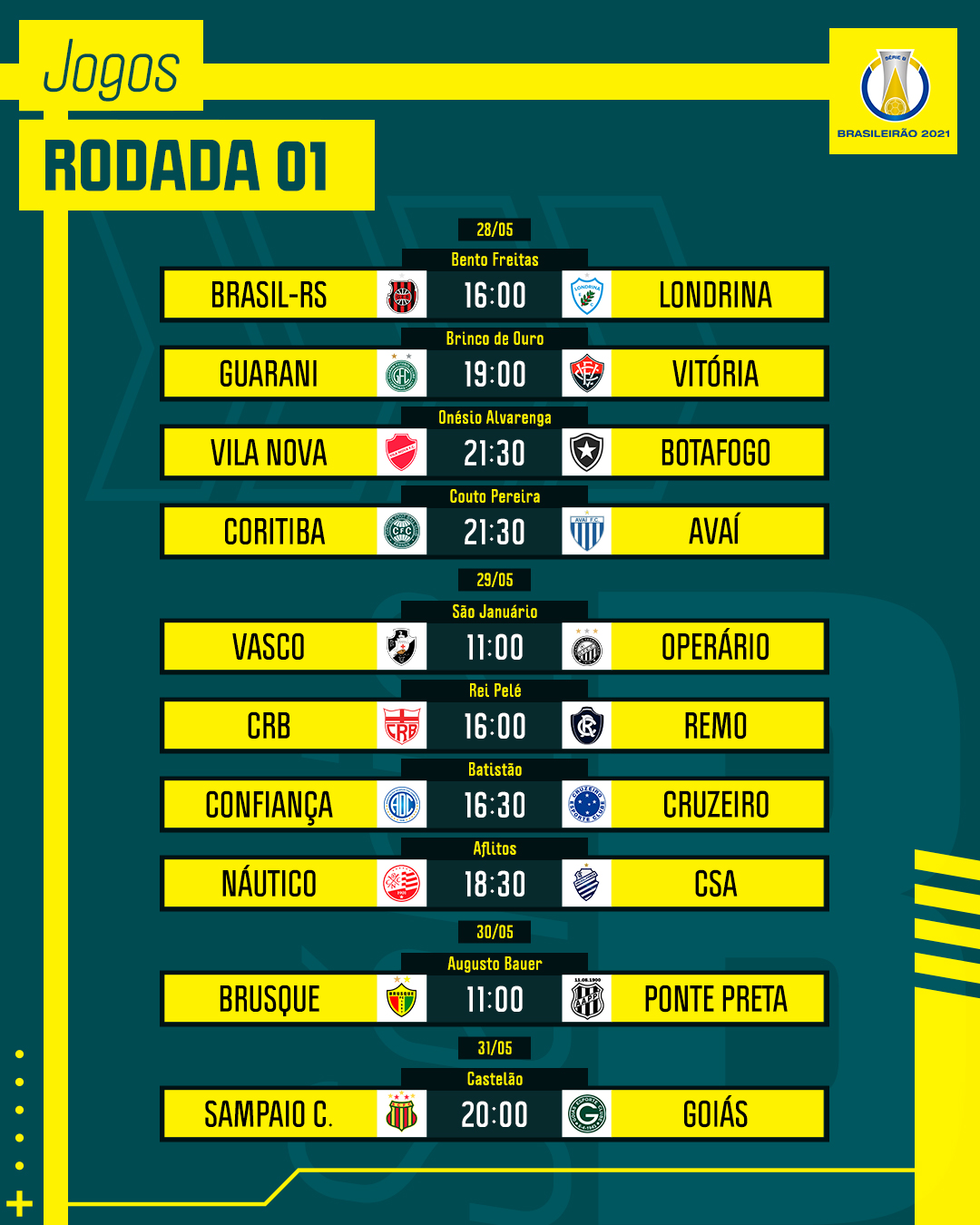 Brasileirao Serie B : Kit 10 Placas Decorativas Times Futebol Brasileirao Serie B Shark Comunicacao Visual Placa Decorativa Magazine Luiza - O campeonato já teve inúmeros formatos, incluindo fases eliminatórias e pontos corridos.. The campeonato brasileiro série b is commonly referred to as the brasileirão série b, and until 2017 was officially called brasileirão chevr. Aug 08, 2021 · each year, four teams with the lowest amount of points are relegated to serie b, with four teams from the latter earning their promotion. O campeonato já teve inúmeros formatos, incluindo fases eliminatórias e pontos corridos. The brasileirao's current format was established in 2003. The team with the most points after 38 games gets to lift the trophy.